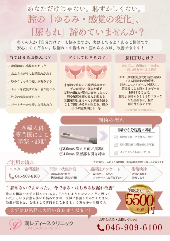 当院では、切らずに膣の引き締めを目指す「膣HIFU治療」を導入しています。